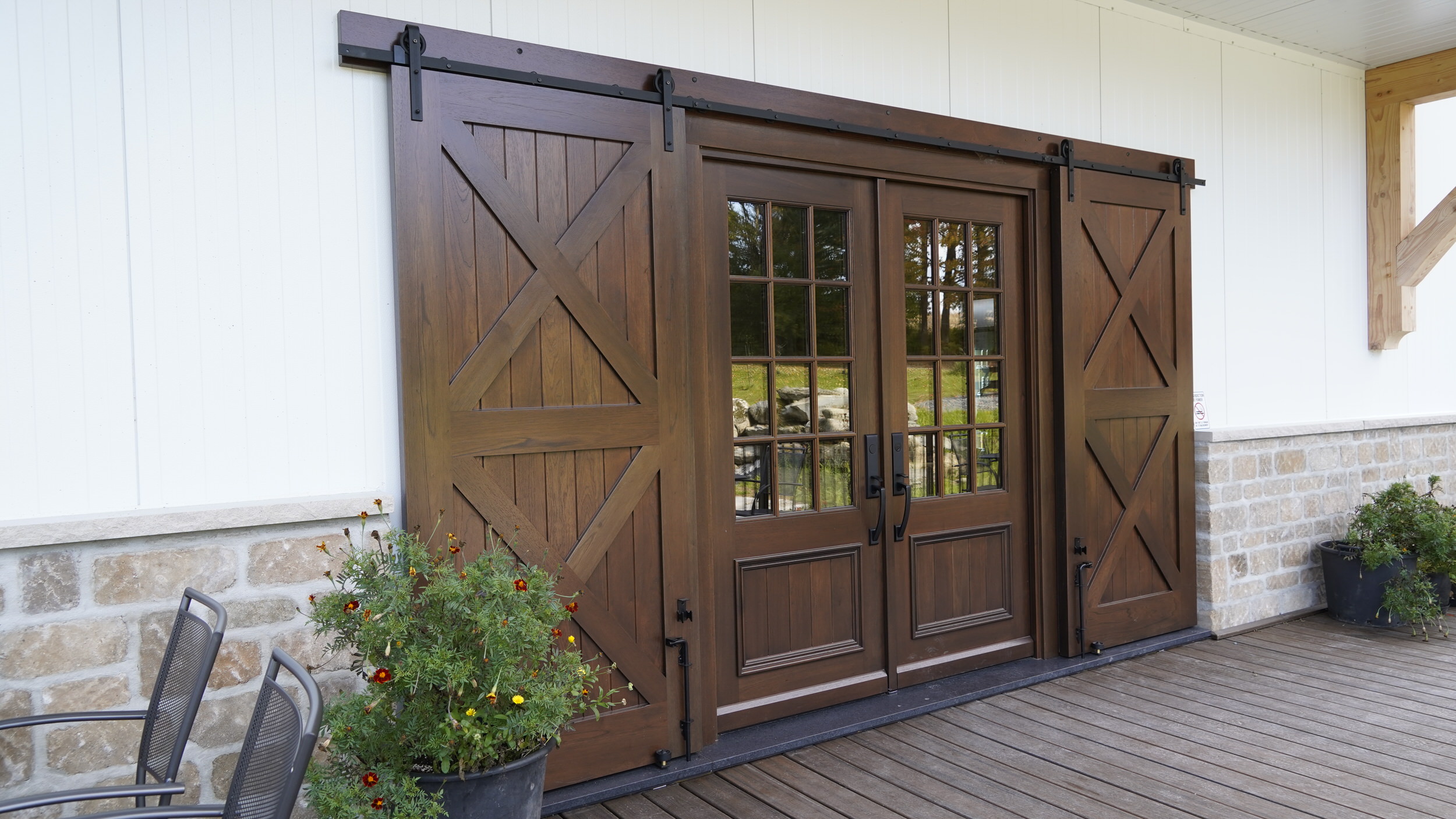 L’entreprise La Vallée du Moulin nous ont contactés pour produire des portes uniques pour l'entrée de leur boutique du terroir, située à Melbourne en Estrie.